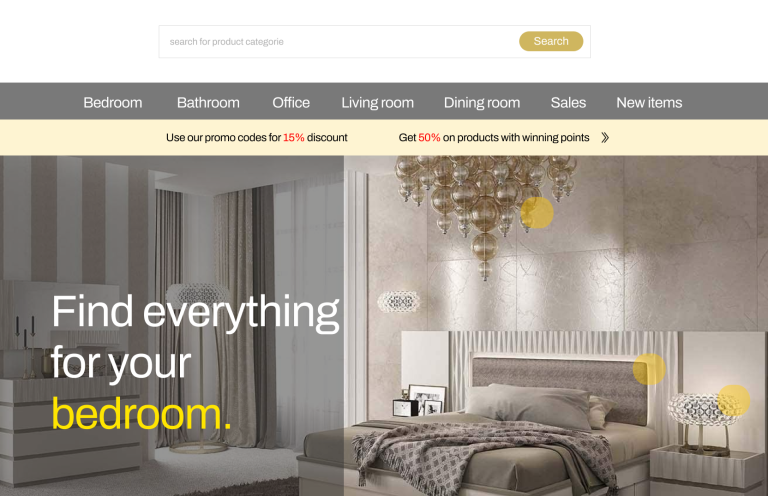Ein eleganter Online-Auftritt für eine Interior-Design-Marke, der Produktpräsentation und Markenidentität vereint.